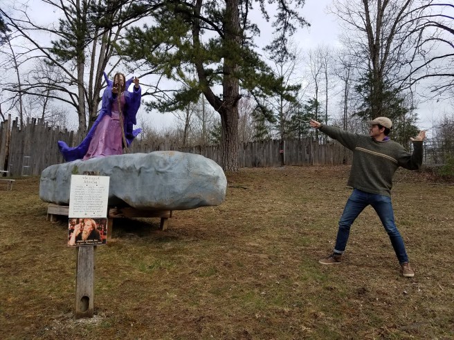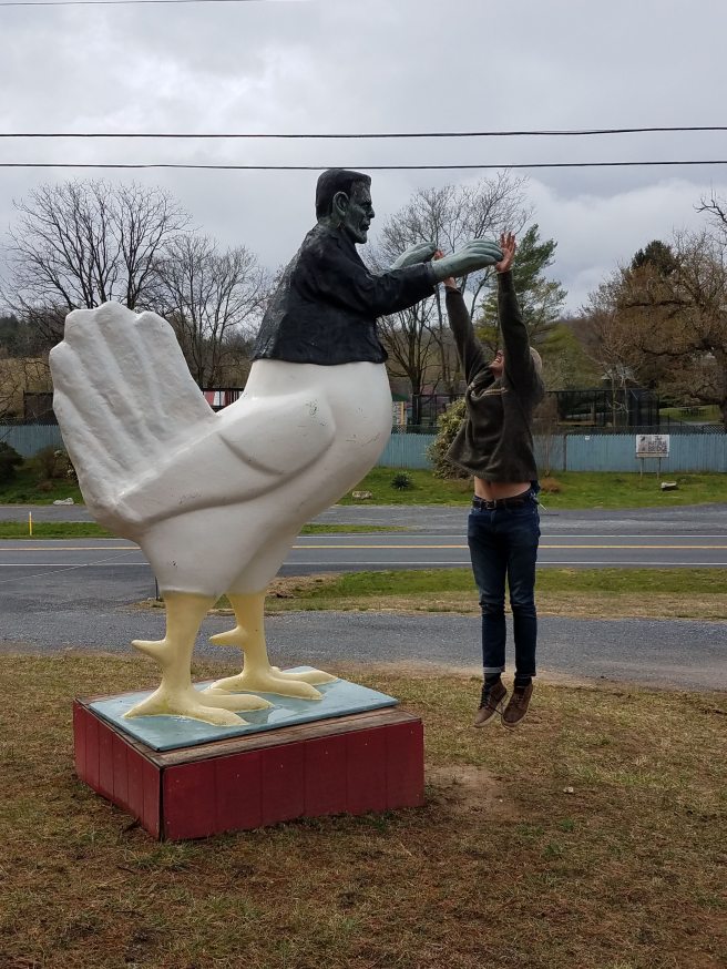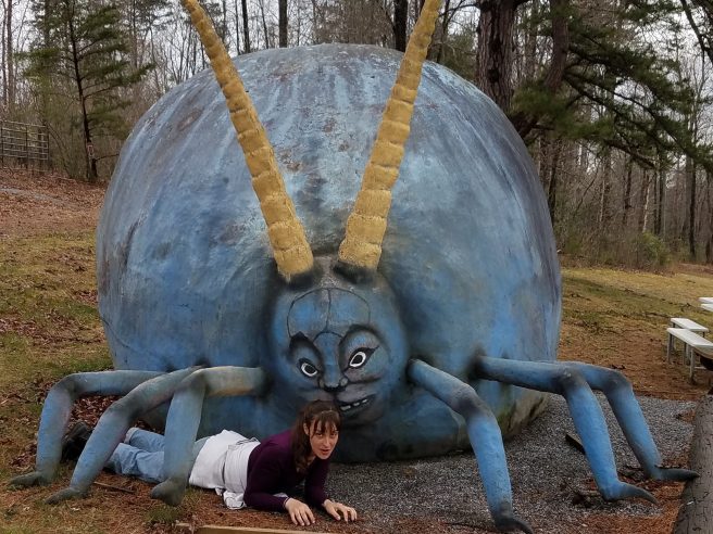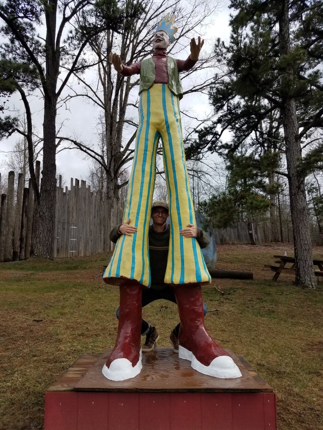 And so we’re off, the North Carolina border in our GPS. A moment of grunts and grumbles, perhaps we roll over, punch the pillow. But oh no no no children, no sun’s a’rising, the night is much too long. Our RadioLab is hard cut as the breaks slam. Tires skid, necks whip, and slugger squeels her displeasure. Finally, we come to a quivering hault, and we face them. It seems they take up the whole of the horizon, shoulder to shoulder, eyes a’blaze. Here, a ten foot tall wizard, staff aloft, fingees pointing. There a bulbous blue beetley boi, giggling in his shrillest reeeeeteedeedeedee. A huge face, those thick beautifying eyelashes, that sweet, sticky, intoxicating ooh of a mouth. Those massive, spindly legs, climbing up to the skies like a ladder to Jesus. But they are still. Caught as in amber. Relics of a war frozen in time, too terrible to continue.