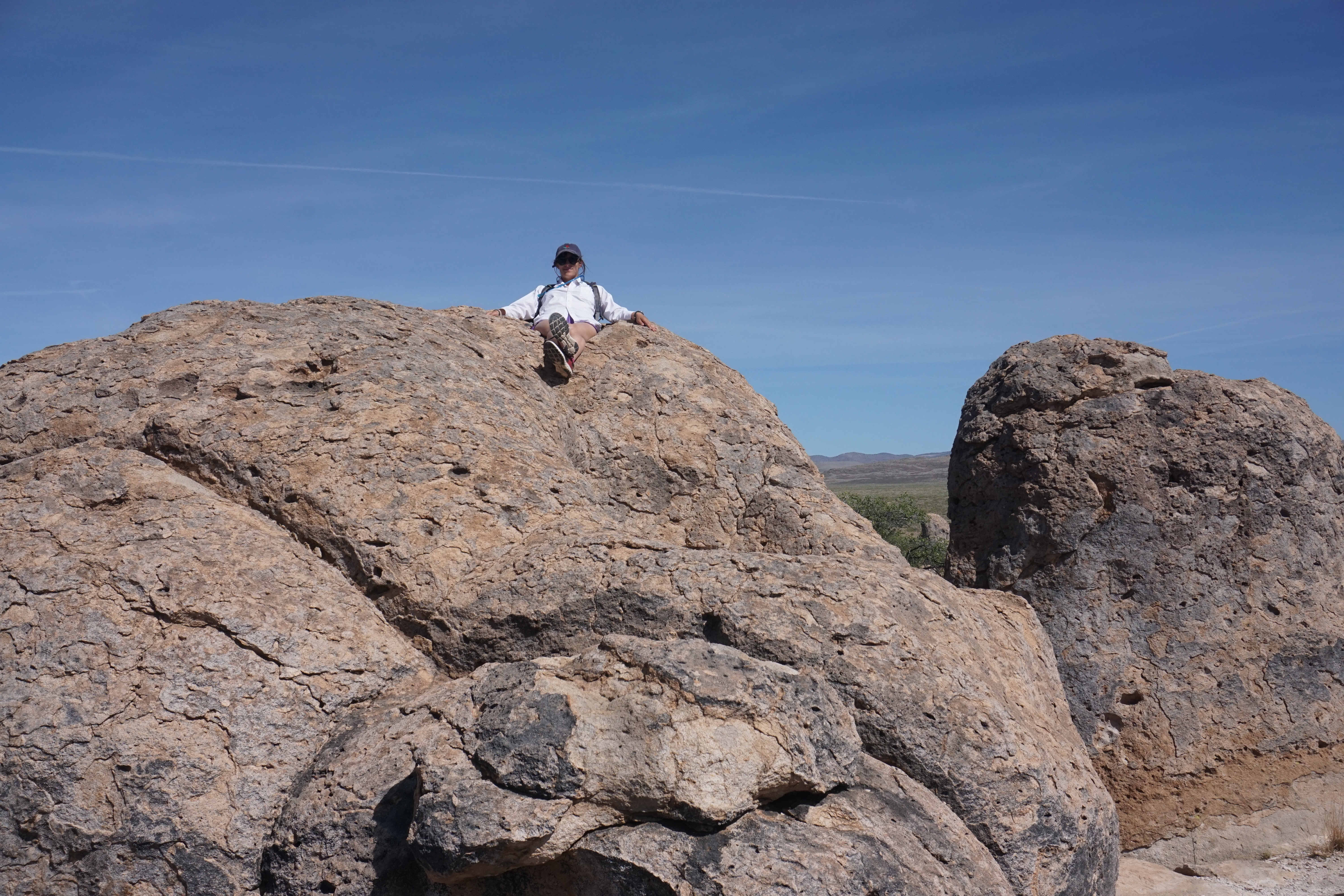 We spent our morning scrambling over and through the locals. It was a really nice time till a roaming hoard of cub scouts ran us off. City of Rocks really is an excellent park. The campsites are all nestled between big beautiful slabs, and the lizards love it. My only real complaint is that the informative signs are almost exclusively astronomical and I prefer more inclusive signs.