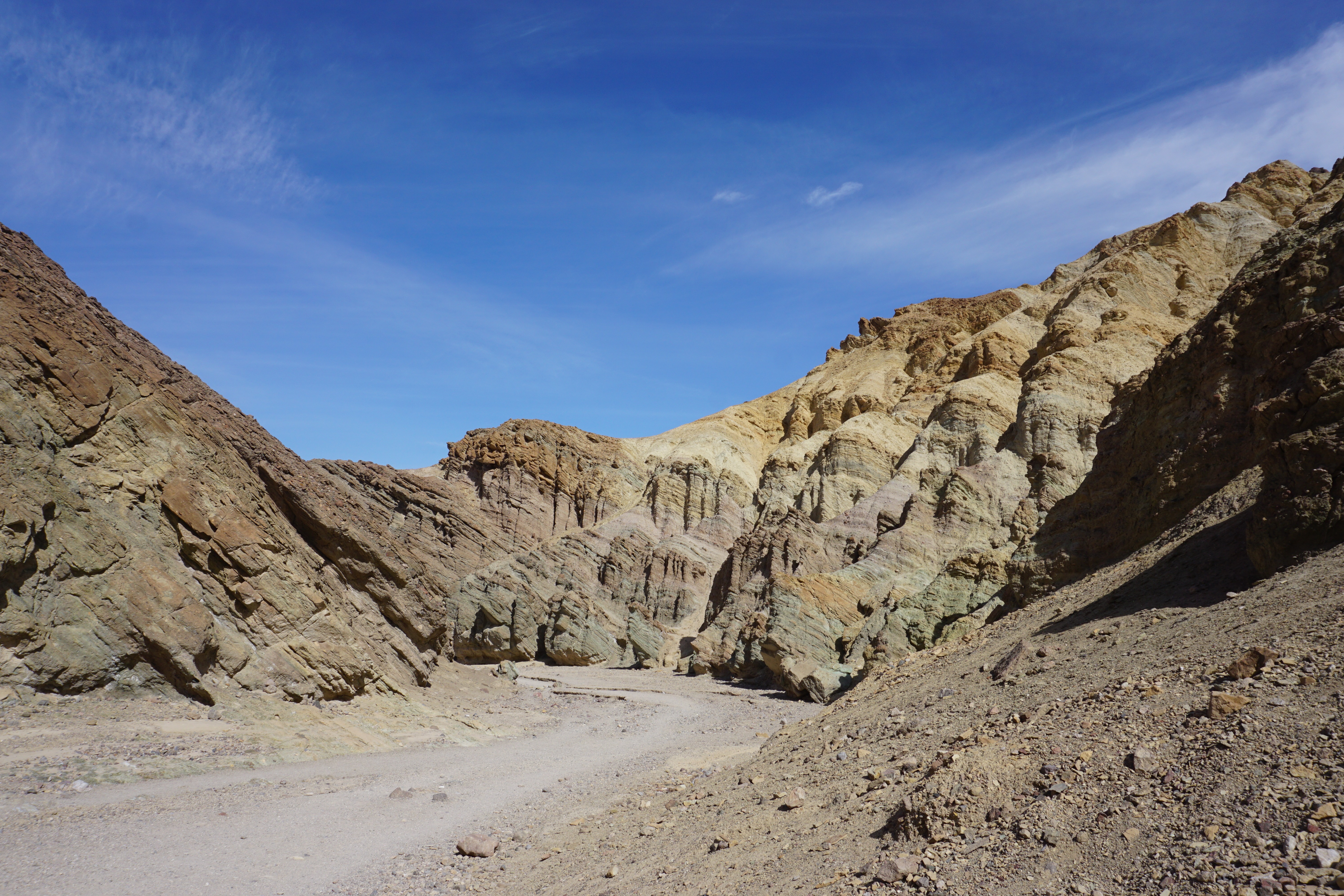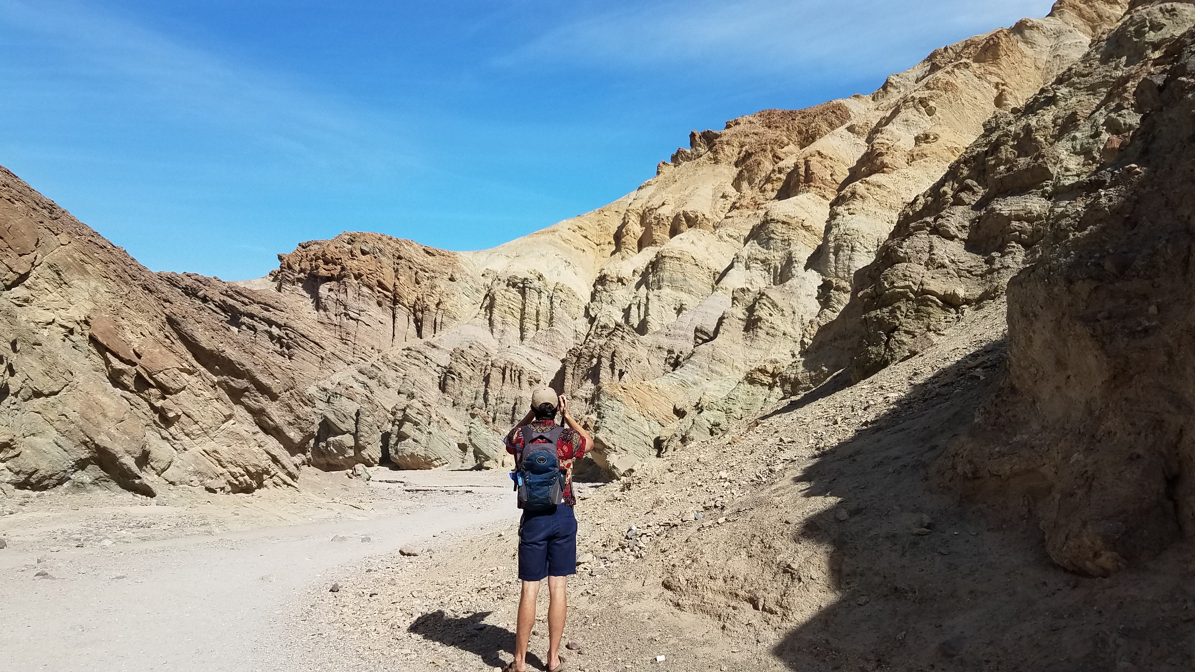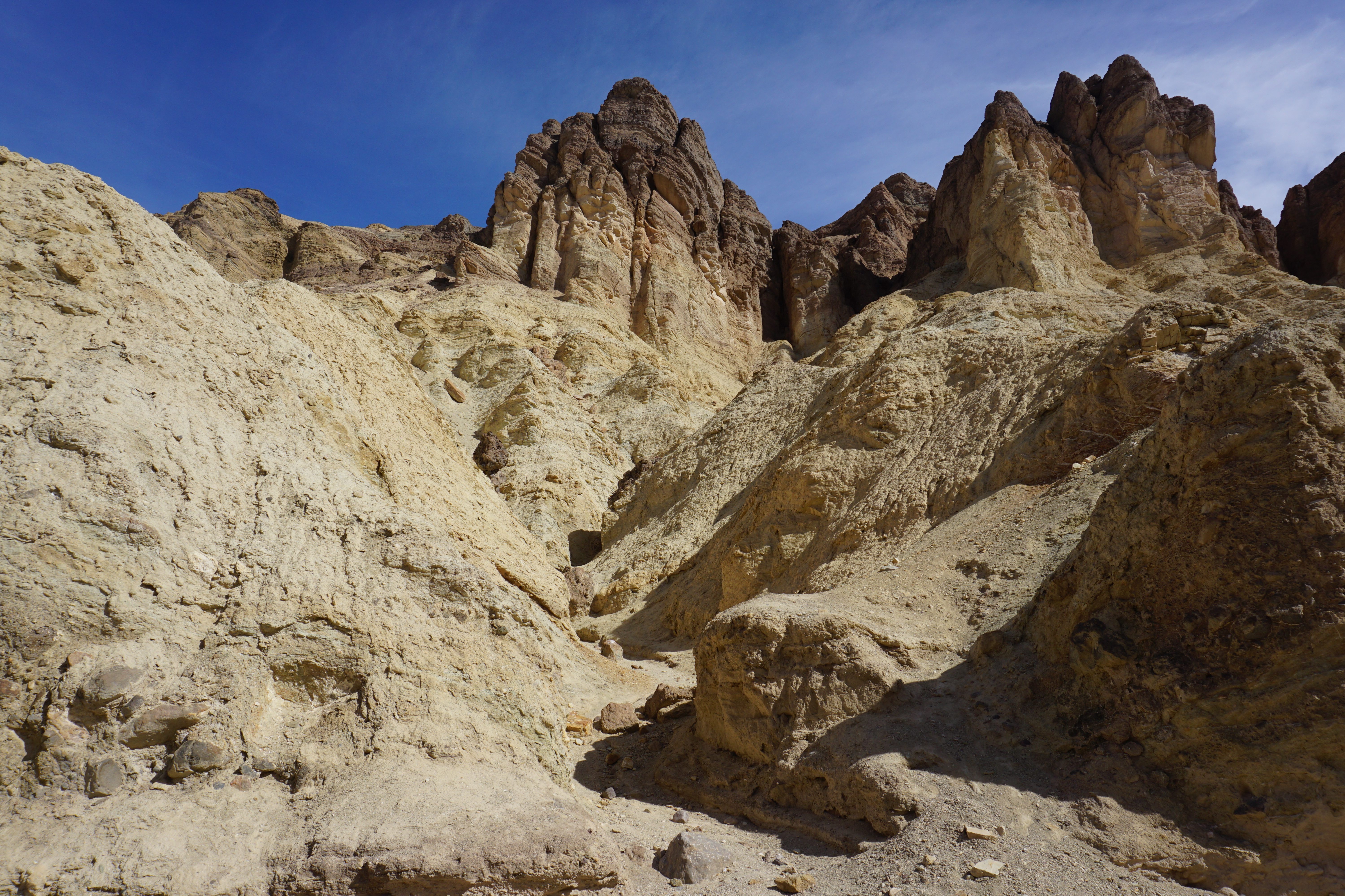 We stopped at one of many Badlands on our way out. I wouldn’t describe the Death Valley Badlands as the baddest of the baddy Badlands. But they’re bad. We enjoyed them immensely and briefly, like many good relationships.