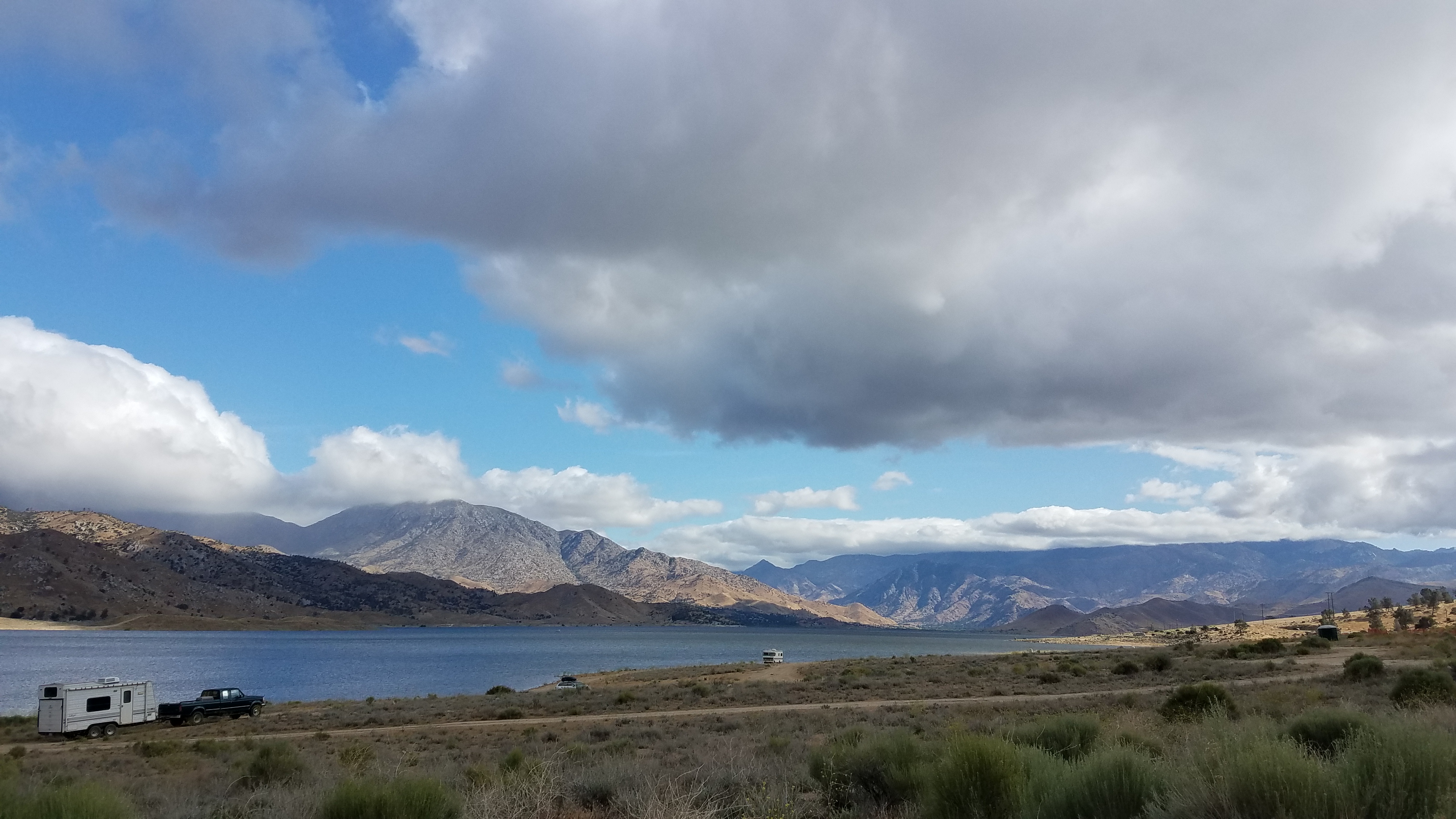 We slept by a lake. We at fish and chips for dinner. It rained.