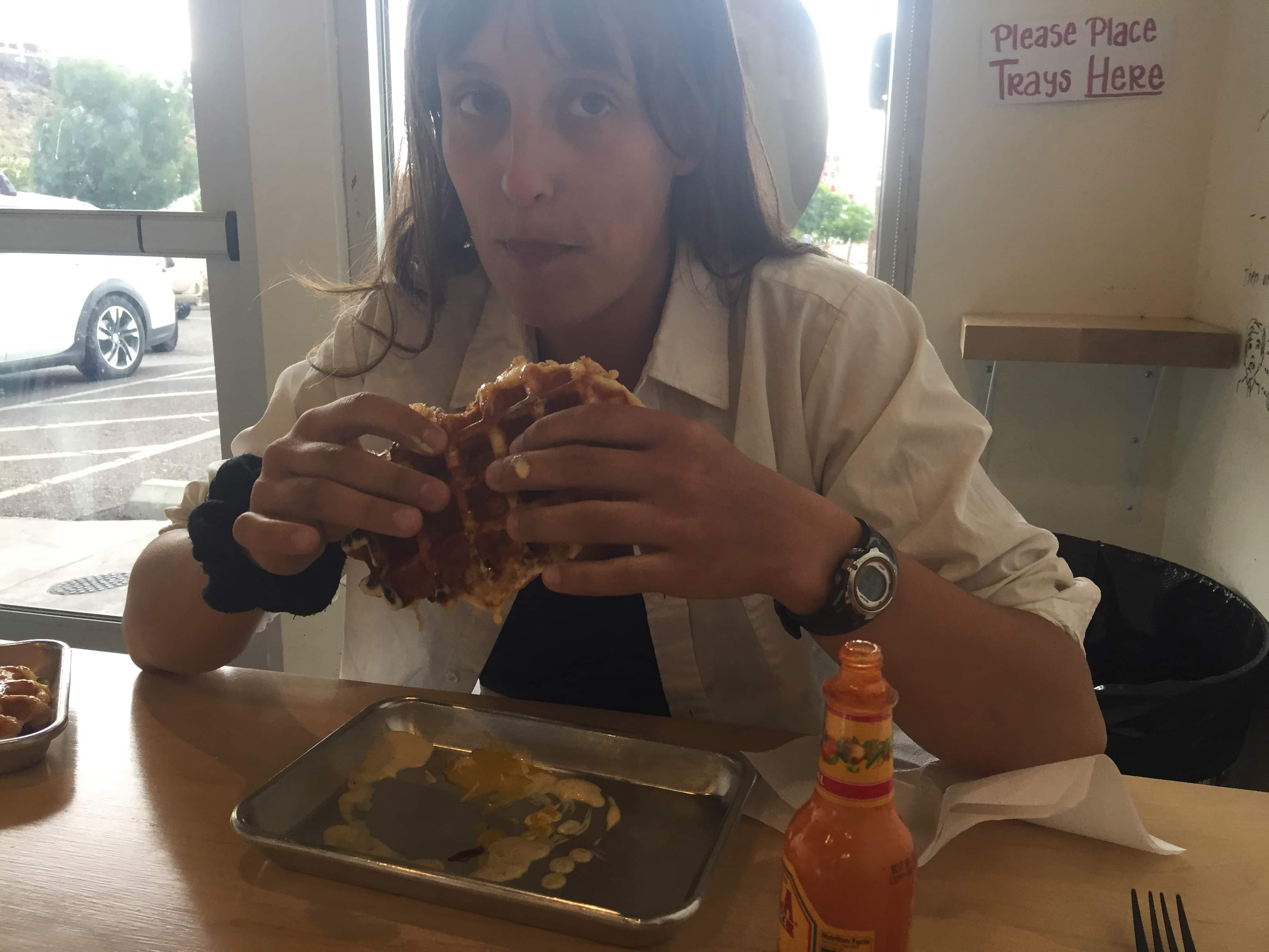 We were sore, our bellies were feeling funky in a less than groovy way, and our heads went boom boom bap inaudibly. St George became our freaky strip mall respite. Here we slept in a bed, ate many many waffles, and watched Seinfeld and Beyonce. It was a healing experience. And now we head into the snow, replacing the down comforter with a cloud blanket.